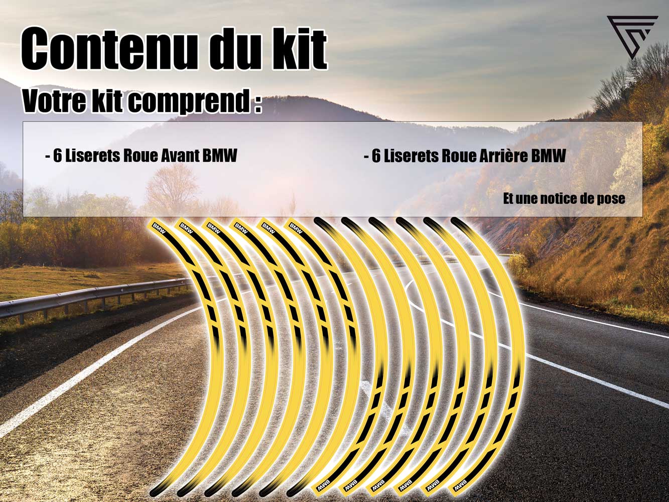 Nos kit de liserets pour jantes de moto sont adaptés à vos roues de BMW.