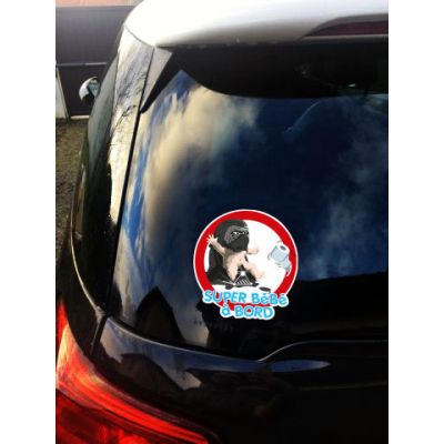 Poser un autocollant bébé à bord sur votre voiture c'est une bonne idée, mais un autocollant Super Bébé à nord c'est encore une bien meilleure idée !!!